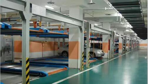 該設備的頂層載車板可上下升降;地面層載車板做橫移,地面層留有一個空位,可以通過橫移載車板變換空位,使空位正上方的載車板下降到地面層。地面層載車板上的汽車可直接出車,完成存取過程。
